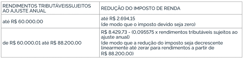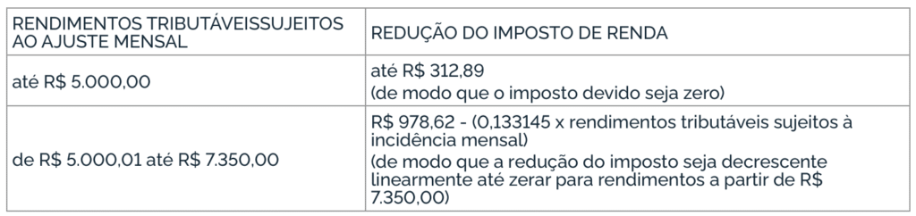 Tabela de redução do imposto mensal